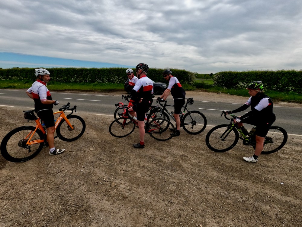 The ride back was just as good and by now the temperature was rising a little which was perfect. The wide expanse of green countryside was divided neatly by the road ahead and it wasn’t ever that hard to work out the direction we needed. At times it had a real feel of London to Paris about it due to the unfamiliarity of the area, the group size and the green and blue views. The only thing different really was the speed! By now we were hitting 20mph pretty much every time we found a flat piece of tarmac and some of those roads went on for miles before the welcome interruption of a junction for a quick stretch or sip of water.